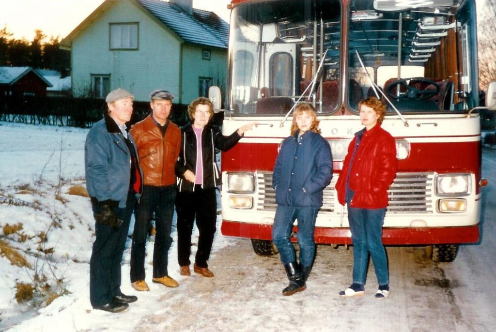 ”Rautavaaralla tapahtui kaikki autojen laittamiset ja remontit taivasalla. Itse kukin oli siellä mukana, oli autojen pesua ja muuta. Talvella ei kaikkien autojen lämmittäminen onnistunut yhtä aikaa, kun mittareissa eivät riittäneet tehot. Yöllä oli kaksi herätystä, kun piti käydä laittamassa autot lämpiämään. Joskus autoja piti vetää sinkin perässä joku aika ennen kuin ne käynnistyivät. Pentti itse ajoi autoja, minä hoidin paperityöt. Tiesin aina, missä mikäkin auto oli menossa. Laitoin autot aamulla linjalle ja sen jälkeen lapset kouluun.”