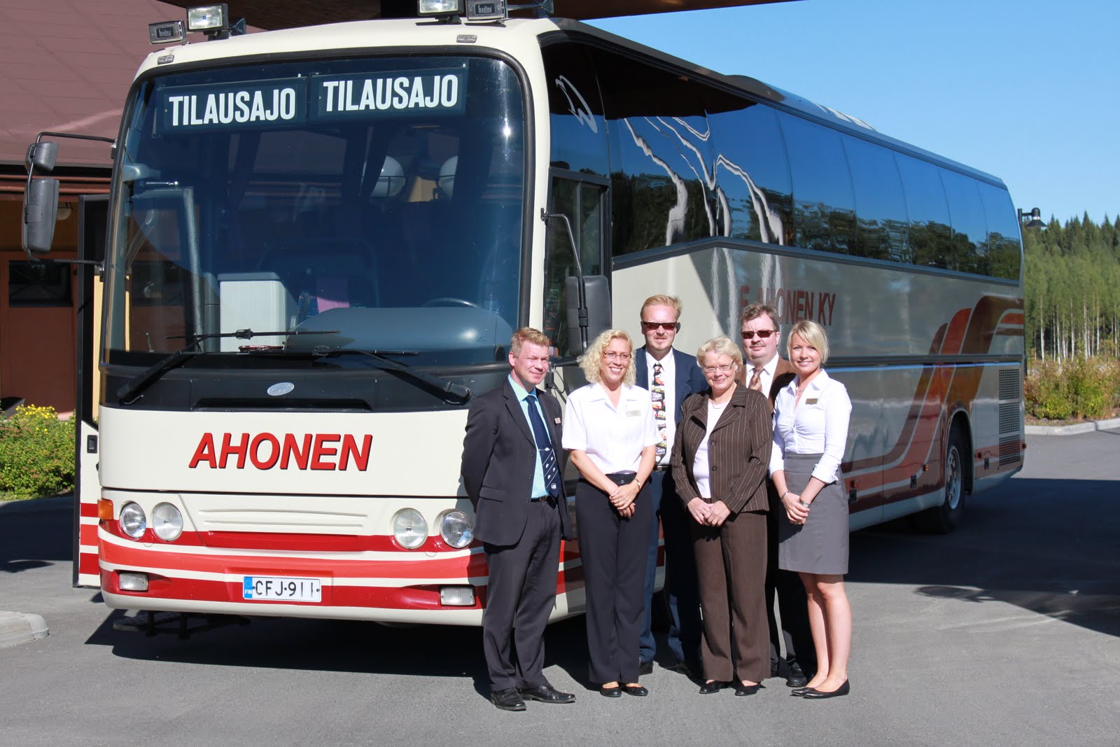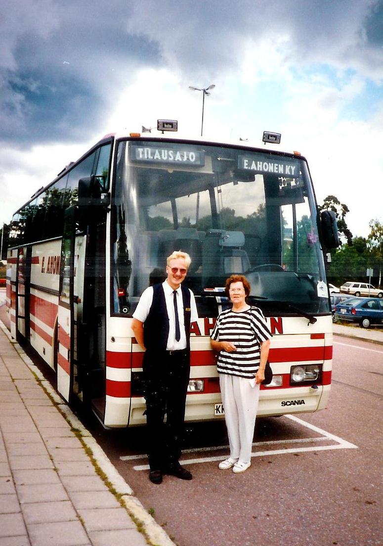 Linjaliikenteen ohella tilasajot ovat olleet mukana kuvioissa aina alkuajoista lähtien. Kuvassa Markku Ahosen serkku Juhani Niiranen, joka on työskennellyt yrityksessä vuodesta 1971 lähtien. Hän on hoitanut yrityksen toimintaan liittyviä asioita, kuten kuljetus- ja huoltotöitä, ajojärjestelyä sekä tilausajojen ja valmismatkapakettien suunnittelua.